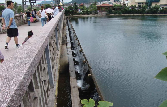 The gate gradually opens around the "horizontal axis" to release flow; On the contrary, when the upstream water level drops, the gate gradually closes and stores water.